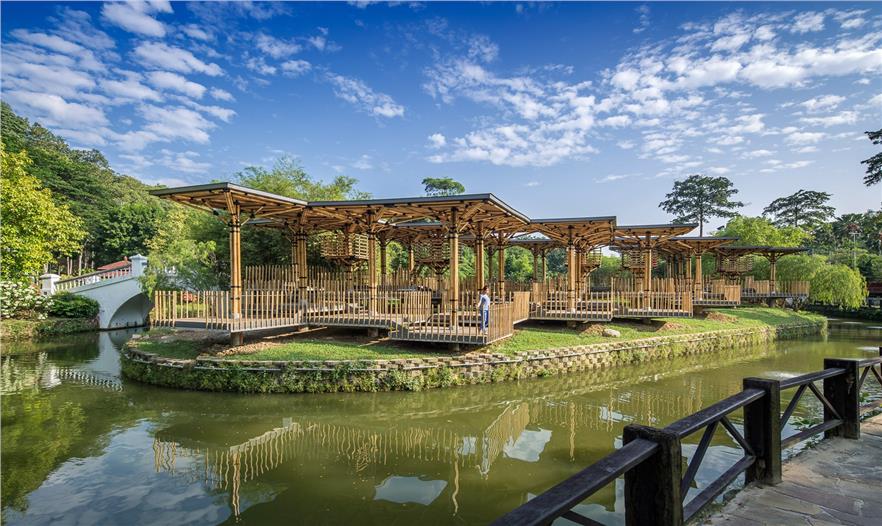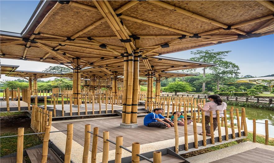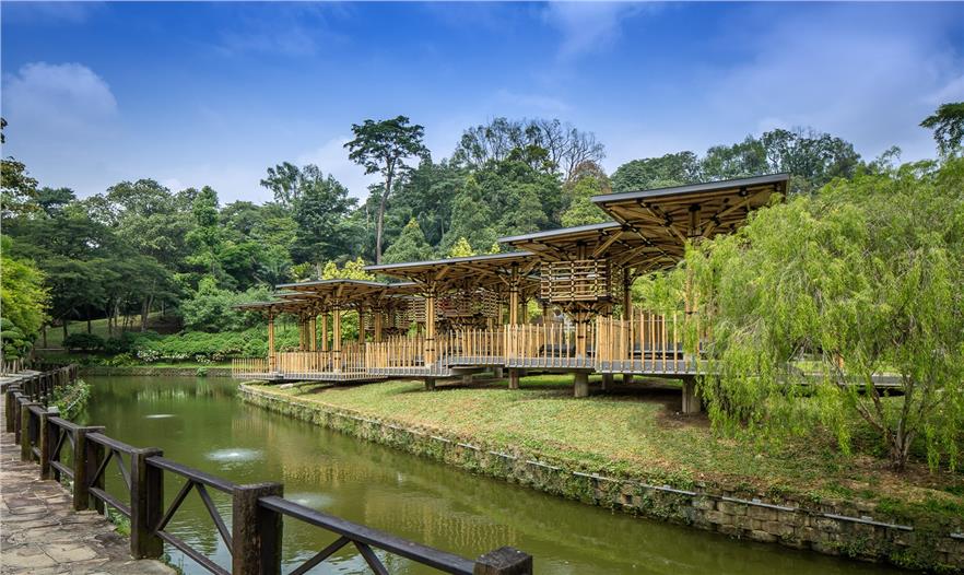 竹屋是由Eleena Jamil Architect事務(wù)所設(shè)計(jì)的一個(gè)公共涼亭,位于吉隆坡最古老和最優(yōu)美的公園——Perdana 植物園里。該公園正好位于該城市的中心,深受當(dāng)?shù)厝撕陀慰偷南矏邸_@個(gè)涼亭本身位于一個(gè)大湖的小島上,該湖延伸穿過該公園的中心。在現(xiàn)代建筑中使用竹子的情況在馬來西亞很少見,而該建筑探索出了其作為可持續(xù)性建筑材料的潛力。