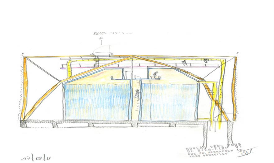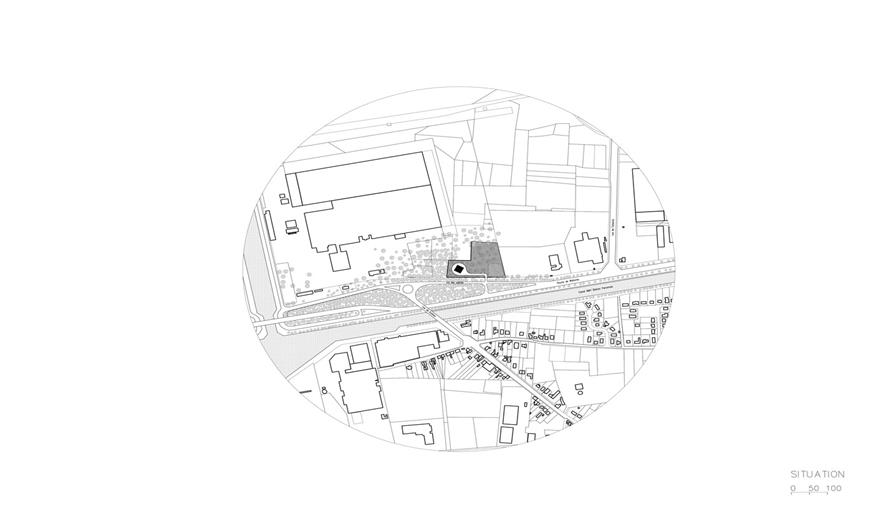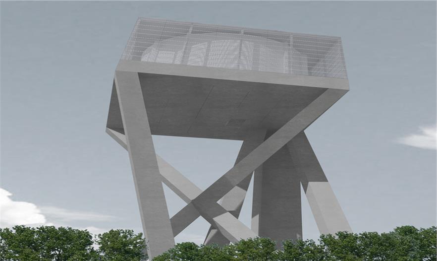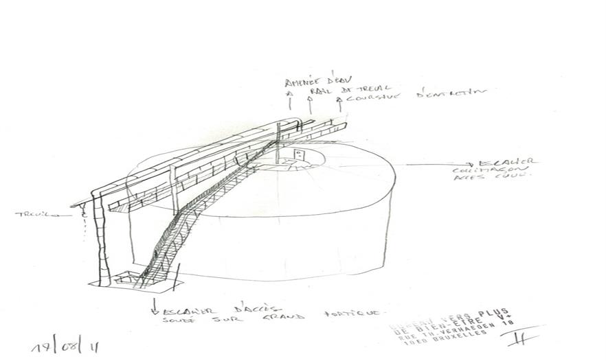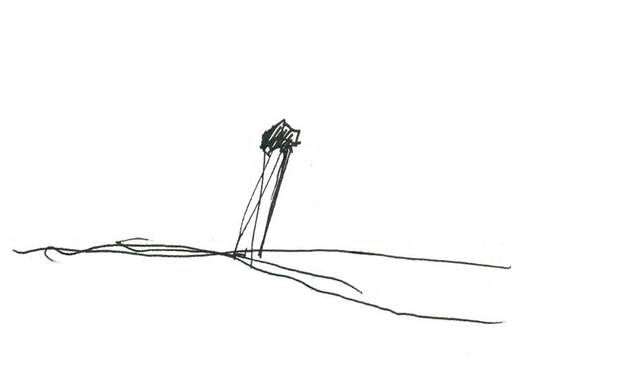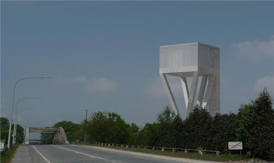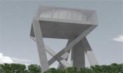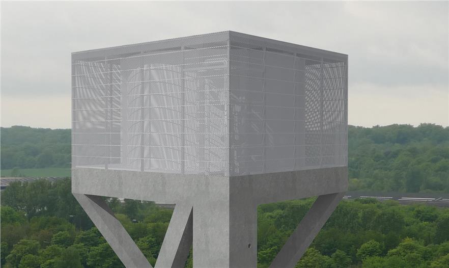 水塔不僅是一種基礎(chǔ)設(shè)施,還能超越其技術(shù)功能、幫助塑造更大范圍的景觀環(huán)境。這些大部分在二十世紀(jì)建造的水塔,通常是由簡單擠壓或某截面沿中心軸旋轉(zhuǎn)得到的形體發(fā)展而來。盡管這種設(shè)想以提供更多接受面為主要目的,從而生成簡單、理性的圖像,但它也反映出容器功能優(yōu)先于景觀設(shè)計(jì)的內(nèi)在邏輯??蛻粝胍プ∵@樣一個少有的、建造新水塔的機(jī)會,對常見的水塔形體提出質(zhì)疑,創(chuàng)造一個效果顯著的、能夠成為 Ghlin-Baudour 工業(yè)地產(chǎn)的地標(biāo)建筑的新項(xiàng)目。