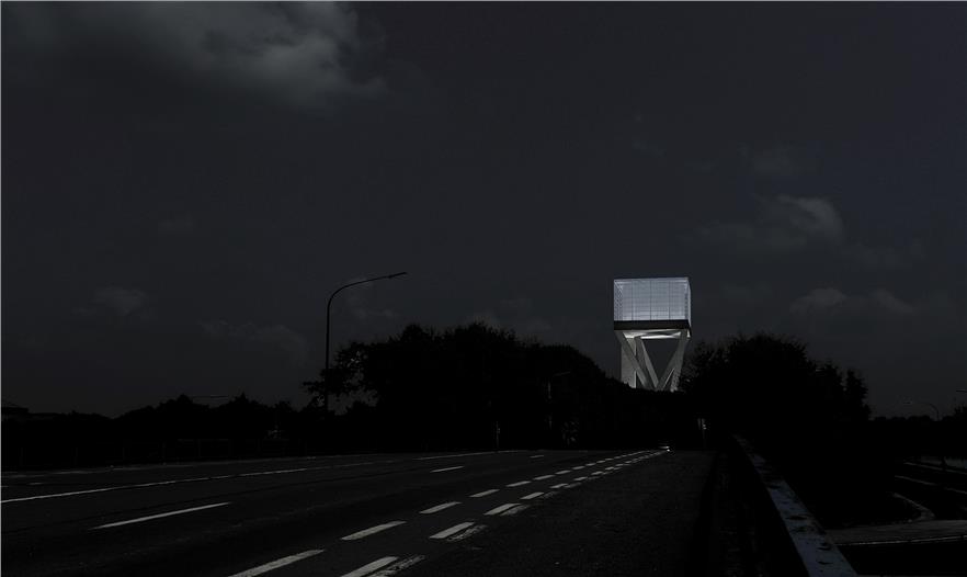 這個消隱的桶為在空中的體量增添了一份優(yōu)雅的透明度,而在夜間,燈光又會為這漂浮的桶營造一種神秘的氛圍。這個壯觀的結(jié)構(gòu)因其在工程中罕有的柔弱之美而更加豐富。它塑造了一種能夠被周圍水路和公路使用者觀察到的、豐富多樣而又富有挑戰(zhàn)的動態(tài)圖像。