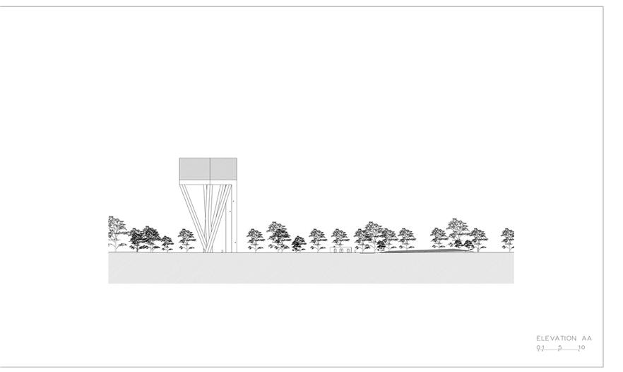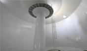 這個項(xiàng)目直接呼應(yīng)著水塔的功能,主要部分是一個立于50米高的平臺上的直徑20米的大桶。平臺由在現(xiàn)場澆筑的X形和V形混凝土結(jié)構(gòu)支撐。而這個2000立方米的大桶并不是結(jié)構(gòu)延續(xù)的一部分,而是一個在支撐體系之上獨(dú)立放置的結(jié)構(gòu)。如果將來人們想要改造水塔,這個平臺都能夠提供極大的靈活性。