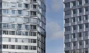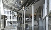 建筑底層的中庭如同劇院一半,又錯落的平臺、走廊和露臺組成。陽光從兩側(cè)進(jìn)入,照射在連接著三個塔樓群的寬敞中庭內(nèi),為到來的人們指引著方向。大堂空間成為一個被覆蓋的“室外空間”,是庭院、廣場在室內(nèi)的延伸部分,如建筑師所期望的那樣實(shí)現(xiàn)了從環(huán)境到建筑的自然的過渡。整個建筑除了黑白灰之外并無其他多余的色彩,但不同灰度間的細(xì)微變化仍然帶來了豐富的層次。不同高度的金屬樓梯在不同的光線下,泛著不同深度的灰,也將光線折射到空間的每個角落。