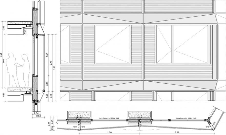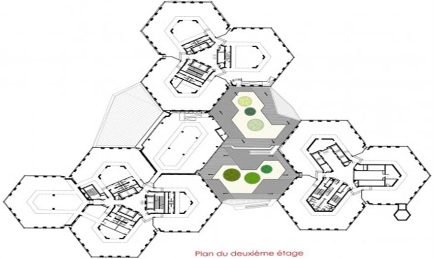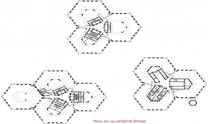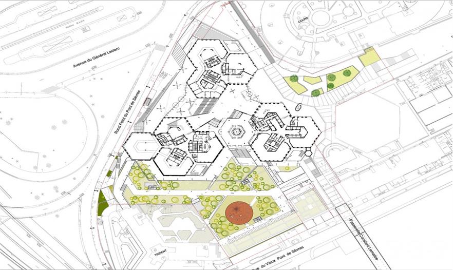 大尺度建筑項(xiàng)目的修復(fù)設(shè)計必須考慮改造建筑的效益和可行性,因此這些面臨改造的建筑本身都有很高的設(shè)計質(zhì)量。在本項(xiàng)目中塔樓的平面呈六邊形,在空中可以360度俯瞰巴黎及其西部郊區(qū)。環(huán)繞中部交通核心筒的辦公空間相對狹窄,保證了舒適的辦公尺度,同時也讓自然光可以覆蓋到每一個辦公席位。塔樓的建筑密度即使放在現(xiàn)在的評判標(biāo)準(zhǔn)中也算不上低,而建筑師的任務(wù)便是要凸顯建筑這些不為人知的優(yōu)點(diǎn)。