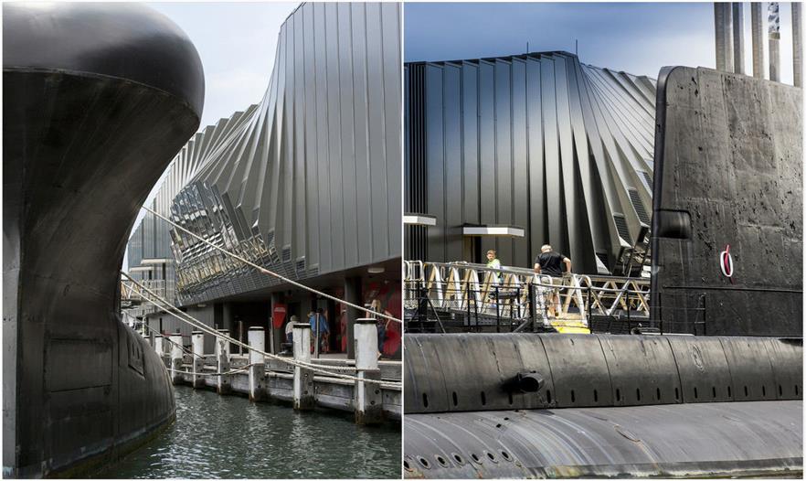 展館的形狀并不是很夸張,黑色本身是較為低調(diào)的,既滿足了有自己的特征也能凸顯出旁邊潛艇的重要性。展館本身充當(dāng)了連接的功能。狹長形的室內(nèi)本身也有些像潛艇的內(nèi)部構(gòu)造,建筑師通過懸浮的風(fēng)扇、魚雷等物品營造了一種工業(yè)感。這里展示了海員生活的資料,包括日記、家書、照片等物品,讓人體會(huì)到海軍的生活。