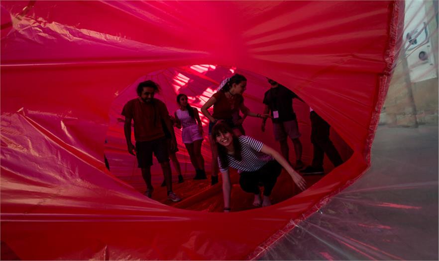 去年,Plastique Fantastique 受邀參加了 180 創(chuàng)意營(yíng)Creative Camp,位于葡萄牙阿布蘭特什的運(yùn)河180區(qū)域。在其中他們創(chuàng)造的巨大的充氣草莓冰激凌擺放在公共空間之中,為人們帶來了獨(dú)特并有趣的體驗(yàn)。發(fā)起人記錄了他們建造的過程以及不同的項(xiàng)目。