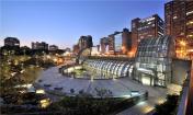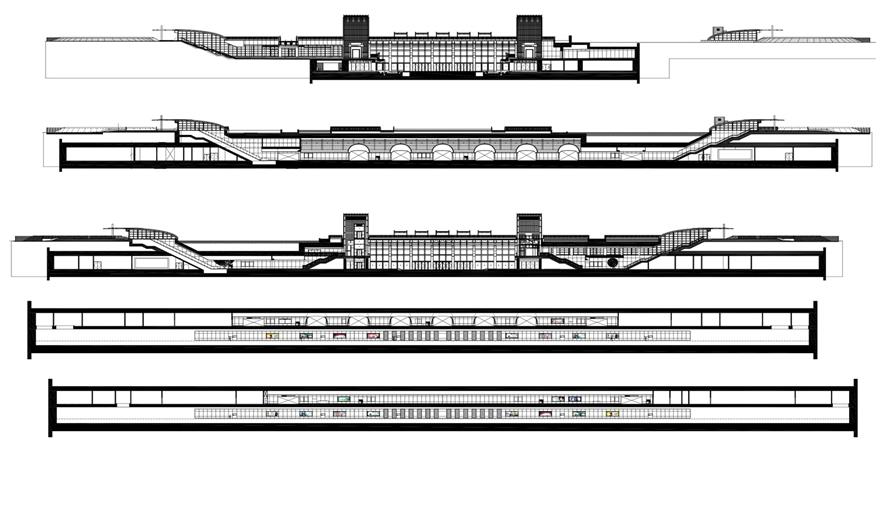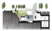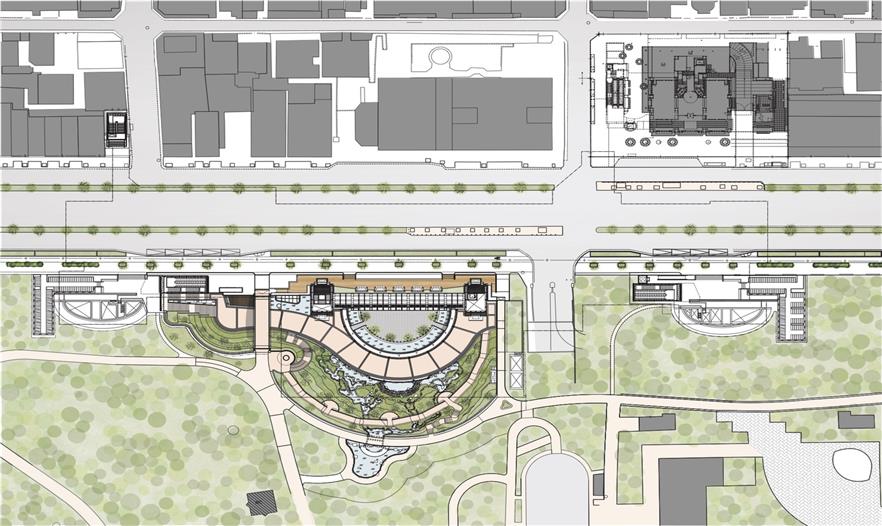 車站想要與公園很好的搭配并消融在地貌之中。一個半圓形的下沉空間,把景觀引入通往地下。設計把本身黑色管道一樣的地鐵空間引入了陽光與新鮮空氣。 通過高程控制,分層布置廣場、通廊及會議區(qū)。周邊的種植設計可以有效吸收人們活動產(chǎn)生的噪音。從地鐵出來的游客,會在天性的驅(qū)使下,尋找陽光與和風,最終自然而然地走到公園里。 這種自內(nèi)而外的轉(zhuǎn)變營造了有趣的自然環(huán)境,并最終使人們?nèi)粘Mㄇ谧兂擅烂畹穆贸獭?