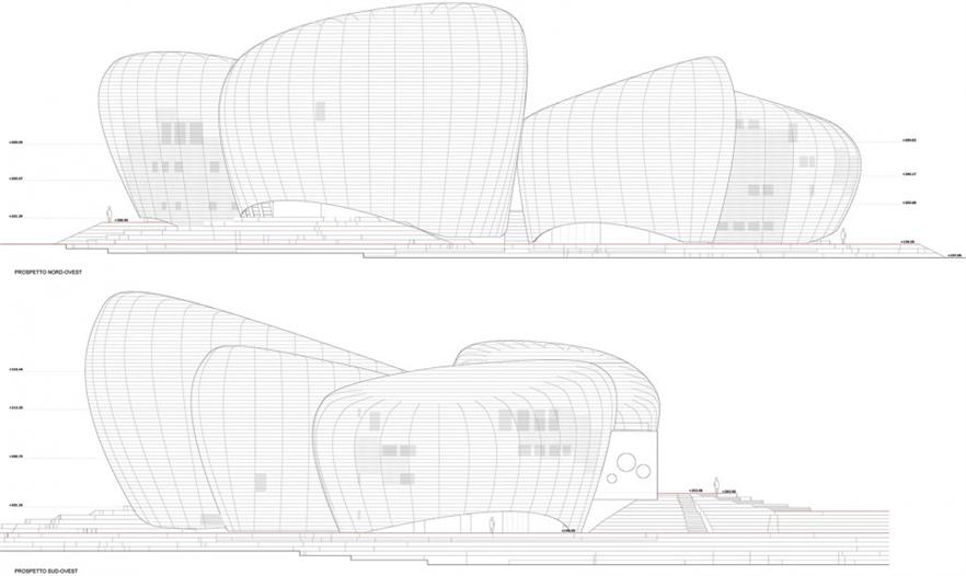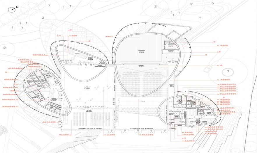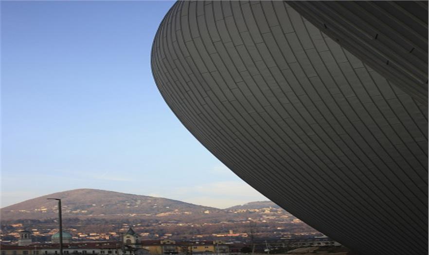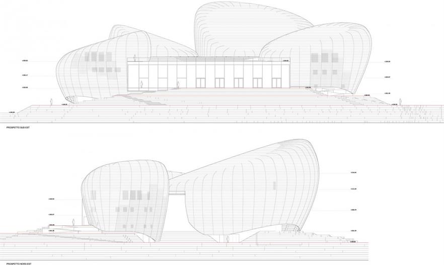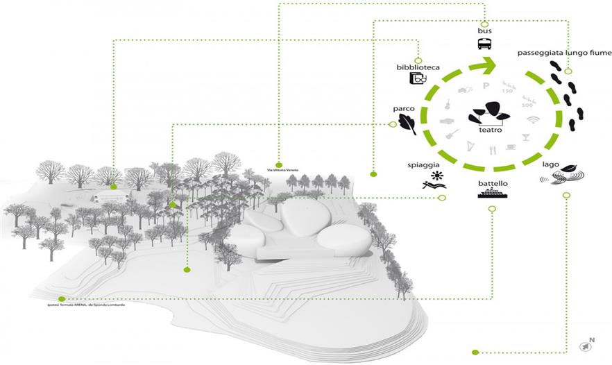 造型簡(jiǎn)潔現(xiàn)代、極富雕塑感的Verbania多功能文化中心坐落于意大利第二大湖-馬焦雷湖湖畔、 San Bernardino河河口處,距其不遠(yuǎn)便是現(xiàn)用作當(dāng)?shù)貓D書館、歷史悠久的Villa Maioni。這座擁有分別可容納500人和200人的一大一小兩個(gè)劇場(chǎng),相應(yīng)的服務(wù)、配套、辦公空間以及排練廳、餐廳和咖啡館等功能的建筑綜合體將成為眾多文化活動(dòng)和藝術(shù)展覽的舉辦場(chǎng)所。在建筑外側(cè),沿著地勢(shì)逐級(jí)下沉的露天臺(tái)地則是眺望小城壯麗風(fēng)光的不二之選。建筑的屋頂廣場(chǎng)具有極高的社會(huì)價(jià)值,這個(gè)全新的城市公共場(chǎng)所將成為市民舉辦各類休閑、集會(huì)和娛樂互動(dòng)的首選。優(yōu)越的中心區(qū)位注定了建筑將成為當(dāng)?shù)刈詈诵囊彩亲钣谢盍Φ墓矆?chǎng)所,并進(jìn)一步提升城市生活質(zhì)量和景觀質(zhì)量。