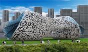 vasil velchev是一位電氣工程師,同時(shí)也有著十余年平面設(shè)計(jì)師的工作經(jīng)驗(yàn)。產(chǎn)品設(shè)計(jì)對(duì)他來(lái)說(shuō)是作為一種業(yè)余愛(ài)好開(kāi)始的。 “量子”是一個(gè)博物館兼展示中心,其設(shè)計(jì)意圖在于展示最前沿的產(chǎn)品設(shè)計(jì)和這些年vasil velchev所有重要的標(biāo)志性作品。建筑共有三層樓和兩個(gè)通過(guò)隧道連接的不對(duì)稱體量。該博物館由鋼和混凝土筑成,外殼上的不規(guī)則碎片圖案是用鋁合金或其他以3D打印的高分子聚合物構(gòu)成的輕質(zhì)材料。建筑在其端頭處使用了玻璃幕墻,因而可以通過(guò)自然光照明。vasil velchev將這座建筑描述為“有機(jī)-折衷(organic-eclectic)”,其外形可以幾何化地表達(dá)成是一種重疊球體的組合,它們彼此之間相互錯(cuò)位,形成了兩個(gè)擁有不同內(nèi)部區(qū)域和陽(yáng)臺(tái)的不對(duì)稱整體。五條微變形的走廊連接彼此,代表著在產(chǎn)品設(shè)計(jì)中過(guò)去和未來(lái)之間聯(lián)系的想法。