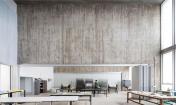 走廊的另一側(cè)則是連續(xù)的教學(xué)空間。輕盈的分隔墻可以收攏至一側(cè),教室空間也將隨之合并擴(kuò)大,根據(jù)需要改變尺寸,甚至貫通整個(gè)樓層。此外,大小不一的天井庭院、露天坡道、半開放的廊道以及入口廣場(chǎng)平臺(tái)都可兼作臨時(shí)展覽、教學(xué)和社交空間,靈活的建筑設(shè)計(jì)為空間的使用帶來(lái)了更多可能性。這棟全新藝術(shù)學(xué)院院館的顛覆性教學(xué)空間與校方創(chuàng)新實(shí)驗(yàn)型的教學(xué)方法相輔相成,成為了視覺(jué)藝術(shù)系學(xué)生最好的學(xué)習(xí)場(chǎng)所。