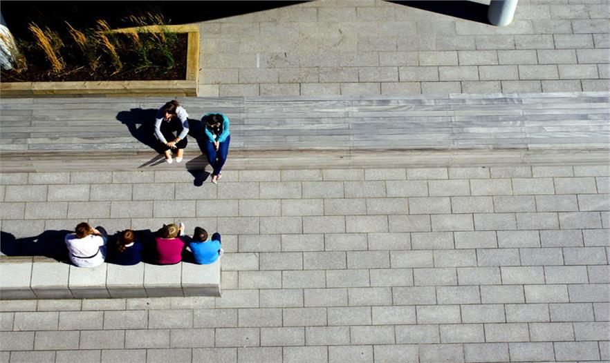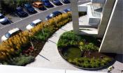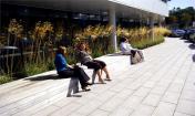 長型的木制長凳從庭院內(nèi)向南突出來捕獲落日。小型的花崗巖覆蓋的凳子位于每個庭院的南端,正好看到繁茂的植物,構(gòu)建倒影池、木制長凳以及波浪狀花盆之間的聯(lián)系。