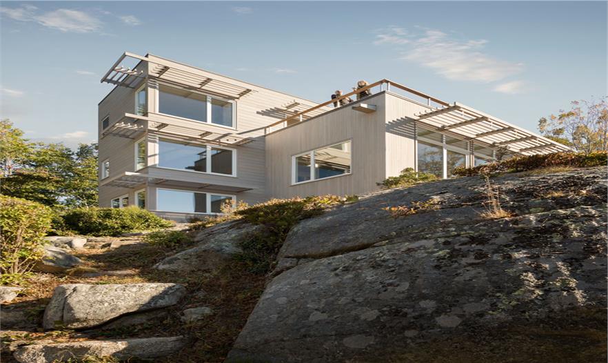 緬因州比迪福德的這座房屋位于蓮花池9米(30英尺)以上的花崗巖頂上,能觀賞到大西洋的景色。