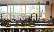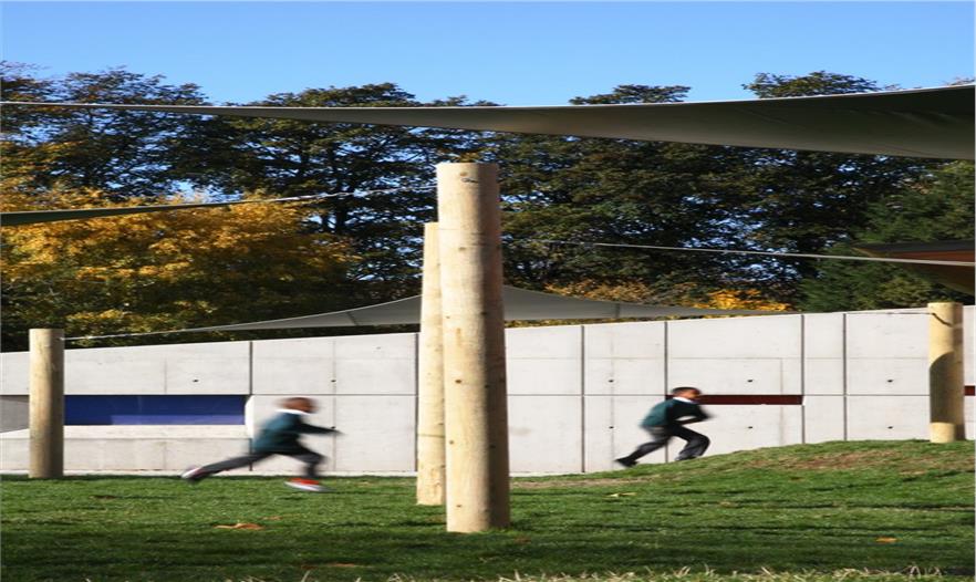 游樂區(qū)的景觀進行了重新設計,最大化該學校綠色區(qū)域的游樂性;大廳和社區(qū)空間經(jīng)由綠色屋頂隔空連接,終點是露天草地劇場,增添到現(xiàn)有的翠綠景觀中,營造野生動植物生態(tài)區(qū)。