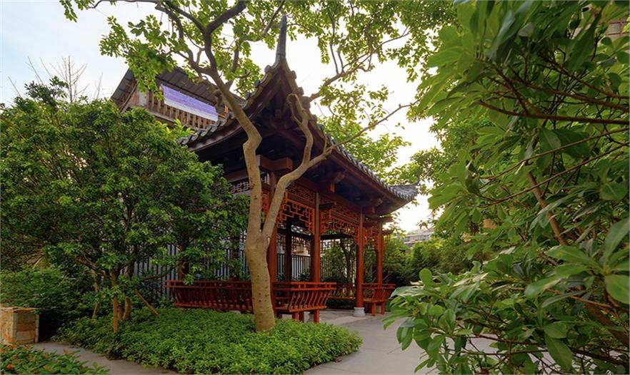 古亭的設(shè)置深化了主題意境,渲染著一種濃厚的文化藝術(shù)氣息,在周圍空間中起到點(diǎn)睛的作用,以達(dá)到整體環(huán)境的空間意識。