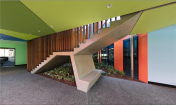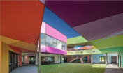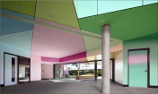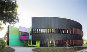 該建筑是環(huán)形結(jié)構(gòu),受大眾認(rèn)同,在該學(xué)校原始的主體規(guī)劃方案上建造的。但是,Mcbride Charles Ryan事務(wù)所并非只采取了一個(gè)環(huán)形或放射狀結(jié)構(gòu),而是選擇疊加成一個(gè)有角度的幾何體,用于定義中央庭院、光井和學(xué)習(xí)空間。這個(gè)幾何體與建筑的環(huán)形結(jié)構(gòu)形成對(duì)比,突出主入口點(diǎn),提供外部世界(奇特、城市、環(huán)形結(jié)構(gòu)都融入到景觀(guān)中)與內(nèi)部世界(復(fù)雜、動(dòng)態(tài)、表現(xiàn)性和五彩顏色)之間的區(qū)別。