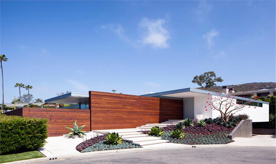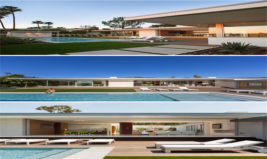 該住宅建筑位于加利福尼亞州拉古納海灘上,為一對(duì)夫婦和他們的2個(gè)兒子設(shè)計(jì),充分利用其晴朗的天氣,讓該建筑的大部分空間對(duì)后院和游泳池開放。