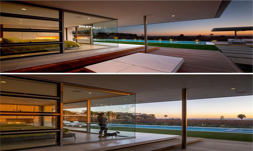 該事務(wù)所設(shè)置了超大的滑動(dòng)玻璃門,建造出室內(nèi)/戶外起居空間。主臥套房足夠高,能夠觀賞到游泳池和海洋的景色。
