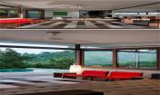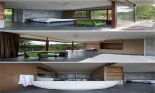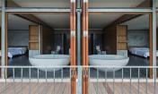 另一層上是2個(gè)臥室,設(shè)置大型的滑動(dòng)玻璃門,打開(kāi)大型滑動(dòng)玻璃門后產(chǎn)生空氣流動(dòng),流經(jīng)臥室和衛(wèi)生間。隔壁是另一個(gè)衛(wèi)生間和臥室,一樣的布置。