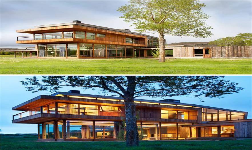 Hughesumbanhowar architects事務(wù)所在蒙大拿州809公頃(2000英畝)的農(nóng)場上設(shè)計了這個現(xiàn)代化房屋,周圍綠水青山環(huán)繞。