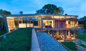 由于離河流很近,春季融雪后有產(chǎn)生洪澇的威脅,該住宅位于76厘米(30英寸)高的滲透性基座上,正好高于洪水線。這樣,該房屋看起來像是漂浮在河流上,好像水穿行在房屋地基下面。