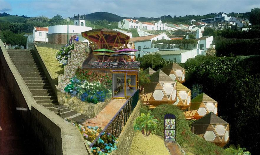 當(dāng)航空公司開始售賣亞速爾群島的廉價機(jī)票時,該區(qū)域會享受相對的安寧和寧靜?,F(xiàn)在開始要改變游客涌入原始群島帶來的問題。建筑師約翰•珊頓(John Shenton)和亞速爾群島旅游、農(nóng)業(yè)發(fā)展公司(TADA)想要避免這種生態(tài)和社會經(jīng)濟(jì)下滑現(xiàn)象,將突發(fā)性旅游群與生態(tài)小屋結(jié)合起來,改善當(dāng)?shù)鼐用竦纳睢?br />