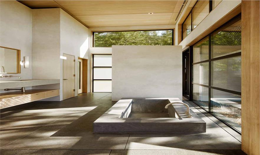 在臥室里還有另一個滑動門,打開就能進(jìn)到外面的道路,能夠觀賞周圍區(qū)域無比倫比的景色。浴室里還有一個木制折疊門,用于節(jié)省空間?;炷恋孛鎻呐P室一直持續(xù)到盥洗室。
