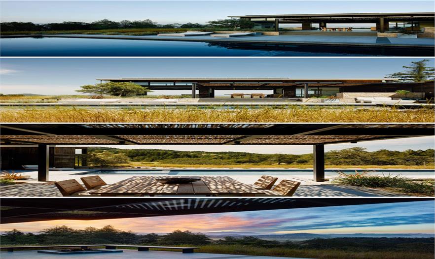 為了能夠觀賞一望無際的山谷景色,這個住宅有各式各樣的戶外空間,如池邊露臺和壁爐,周邊是Arterra Landscape Architects事務(wù)所設(shè)計的景觀。