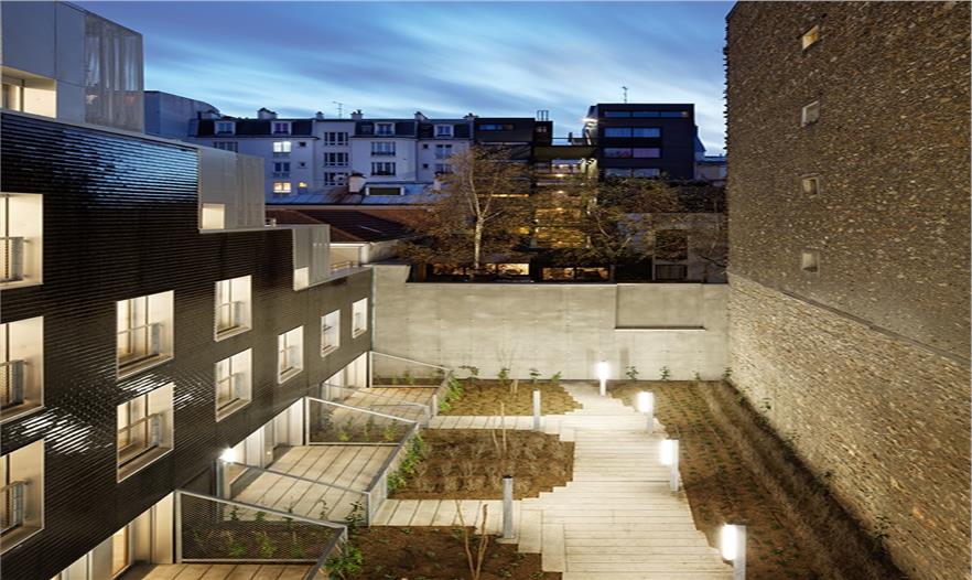 項(xiàng)目位于巴黎近郊rue de Nantes街區(qū)一塊狹長(zhǎng)的場(chǎng)地上,毗鄰de Flandre大道與de l'Ourcq運(yùn)河,保留豪斯曼改造時(shí)期的巴黎風(fēng)貌。