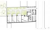 建筑的設(shè)計(jì)理念是尊重場(chǎng)地并適當(dāng)?shù)娜谌氘?dāng)?shù)爻鞘蟹諊鷥?nèi),并用美麗的景象和綠色環(huán)境激活了社區(qū)的生活氣氛。為了將藝術(shù)和“美”的氛圍融入到居民日常生活中,Atelier YokYok精心設(shè)立了一面公共墻作為繪畫站點(diǎn):將居民的日?;顒?dòng)和場(chǎng)所利用的景象的映射在墻面上。