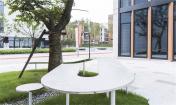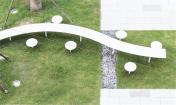 在“廣場長桌”的設(shè)計中,桌子的寬度采納與凳子相同的尺度——360毫米,而這又正好滿足一個人使用筆記本電腦需要的地方。隨著桌子高度變化,它可以被當(dāng)作凳子;可以作為桌子供單人使用筆記本電腦辦公;也有配合人站著使用的高度部分,可以四五個人站著進行小范圍討論、聊天、喝咖啡等活動。其外觀形態(tài)呈現(xiàn)蜿蜒轉(zhuǎn)圜、高低起伏。在室外的廣場讓人獲得在室內(nèi)合作辦公的體驗。