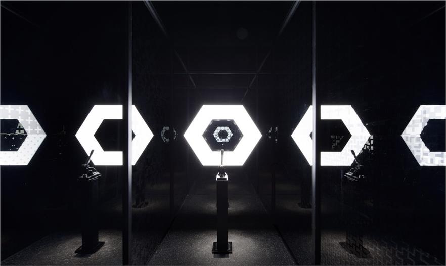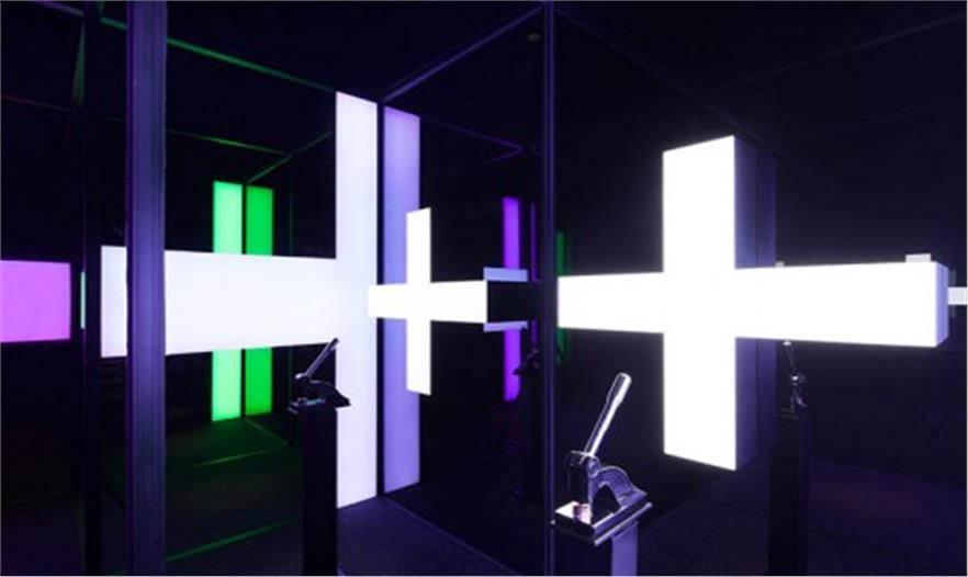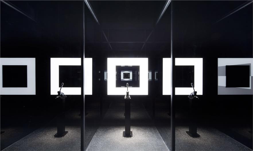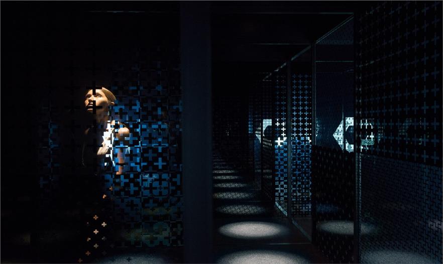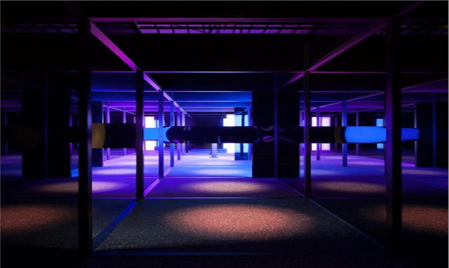 不僅擁有迷宮的常見陷阱,玻璃迷宮更為游戲的體驗(yàn)帶來了獨(dú)特的魅力,使游戲的刺激性更上一層樓。仿佛在包含了無窮無盡的立方體空間中前行,迷宮里用3種不同類型的玻璃以超現(xiàn)實(shí)的方式迷惑住參觀者。318塊由黑色貼膜鏡面玻璃,鏡子,以及透明玻璃所組成的迷宮,配以令人迷炫的LED燈光以及幽暗,神秘的氣氛配置,將整體空間打造得仿若夢境一般。而迷宮中所運(yùn)用到的粗體加號圖案則將其與所在之地又密切地聯(lián)系到了一起。