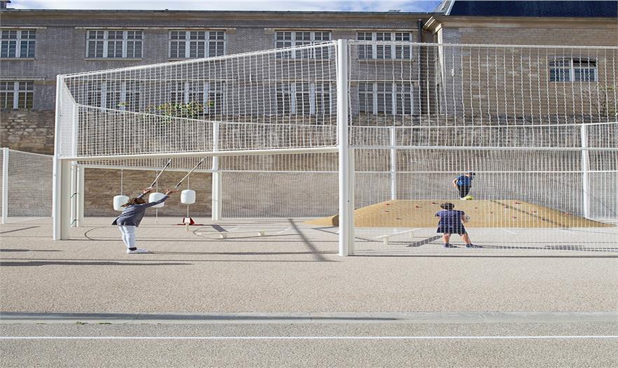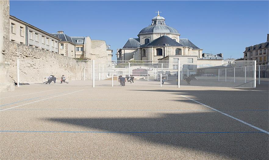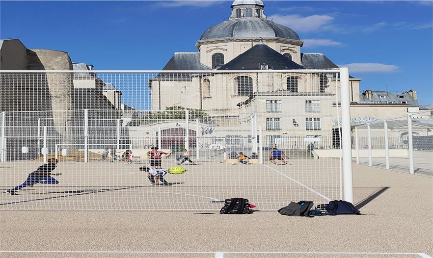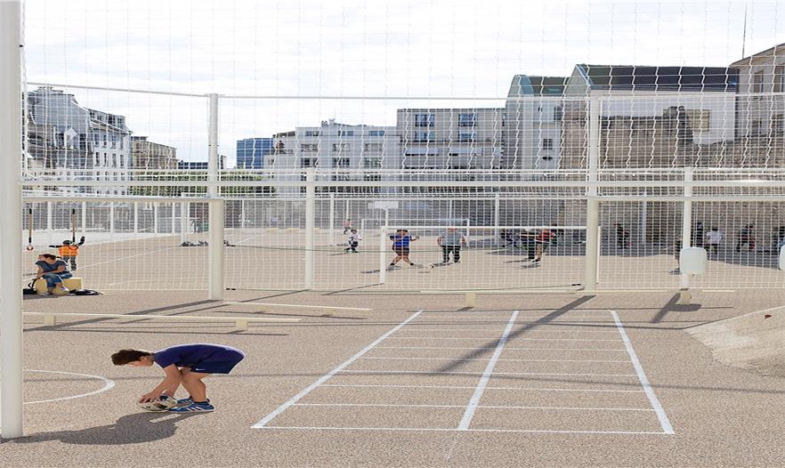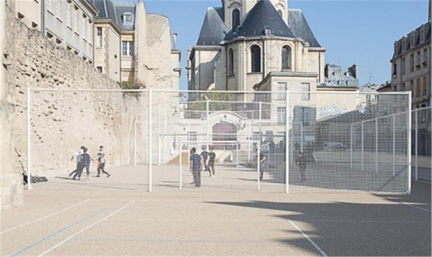 這片毗鄰保羅教堂的運動空間契合了當(dāng)?shù)鼐用駥^(qū)域內(nèi)活動場地的需求,在巴黎4區(qū)的中心地帶創(chuàng)造了一片活力十足,功能多樣的運動空間。法國事務(wù)所NP2F的設(shè)計從被城墻環(huán)繞的獨特地理位置,清新淡雅的環(huán)境色彩與延綿的空間格局入手,讓場地的特質(zhì)展露無疑。