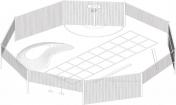 建筑師希望能夠更高效的利用現(xiàn)有的3000平米空間,實現(xiàn)多樣化的游戲與運動功能。黃、白、黑色的橡膠顆粒參差交雜,覆蓋了整個運動場地。被保留的100米跑道、籃球場、排球/網(wǎng)球場、五人足球場以及幼童活動場地首尾相接,將空間劃分為了5個部分。