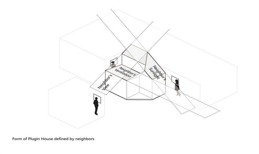 新建房屋不能影響任何方向鄰居的采光、視線與通風(fēng),所以出現(xiàn)了不同方向的退臺和斜切面。甚至在搭建過程中,鄰居新的修改意見也會隨時出現(xiàn),但插件板可以很輕松的現(xiàn)場切割,這一特性使得調(diào)整都能輕易實(shí)現(xiàn)。