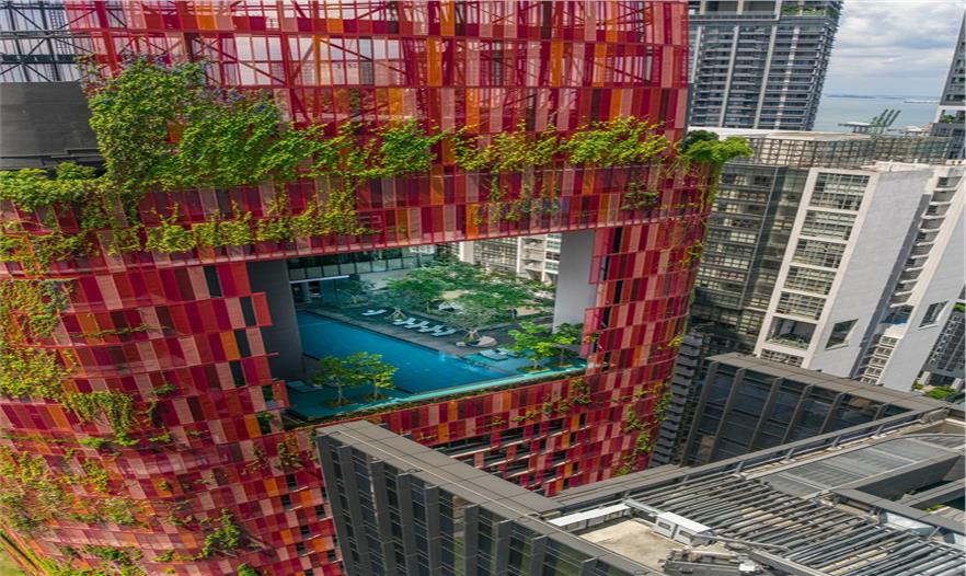 綠色的翠綠塔位于新加坡高密度的中央商務(wù)區(qū)(CBD)核心地段,新加坡綠洲酒店是熱帶城市的土地利用集約化的原型。與溫暖的西部演變出來(lái)的光滑和密封的摩天大樓不同,這種熱帶的“活力塔”為流派的時(shí)尚技術(shù)提供了另一種形象。