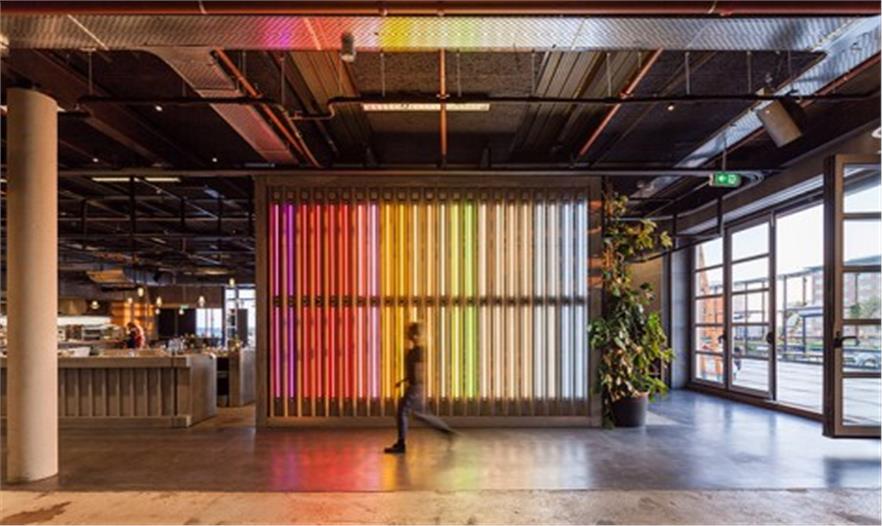 “建筑城市”是一個(gè)生態(tài)系統(tǒng),它的形態(tài)為自然生長而成,其中包括工作、運(yùn)動、接待和活動等空間,均為24小時(shí)開放。對于創(chuàng)業(yè)者和年輕企業(yè)家來說,這里不僅是一個(gè)辦公空間,還是一個(gè)完全的生活空間,他們可以在這里和其他人交流思想,發(fā)展業(yè)務(wù)。NEXT通過一些策略性的介入增強(qiáng)了人們在建筑中的體驗(yàn)。以新的入口為例,曾經(jīng)一通到底的路徑被改成了公共空間,人們可以在這里相互交談并獲得啟發(fā),人與人之間的聯(lián)系成為了最為重要的因素。Bureau餐廳的設(shè)計(jì)也展現(xiàn)了同樣的理念,它位于建筑的屋頂,人們可以在這里一邊享受餐品,一邊縱覽城市景觀。屋頂花園為餐廳提供了新鮮的蔬菜,同時(shí)也是一個(gè)理想的活動場所。