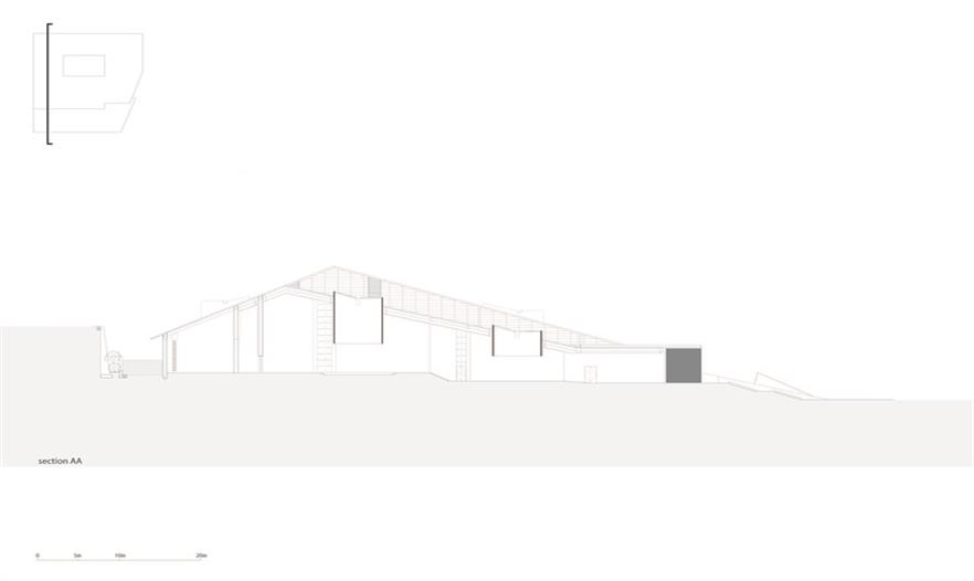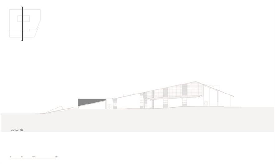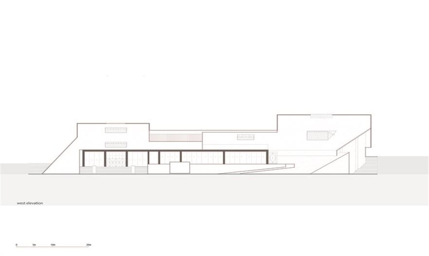 建筑師在建筑物的不同部位選用不同的材料:有些部分如墻面的材料還刻意以防滲劑浸泡石材,希望保持丹霞石切割時(shí)的鮮紅狀態(tài);而屋面則采用孔隙率高的丹霞石,最好大面積的長(zhǎng)出青苔......