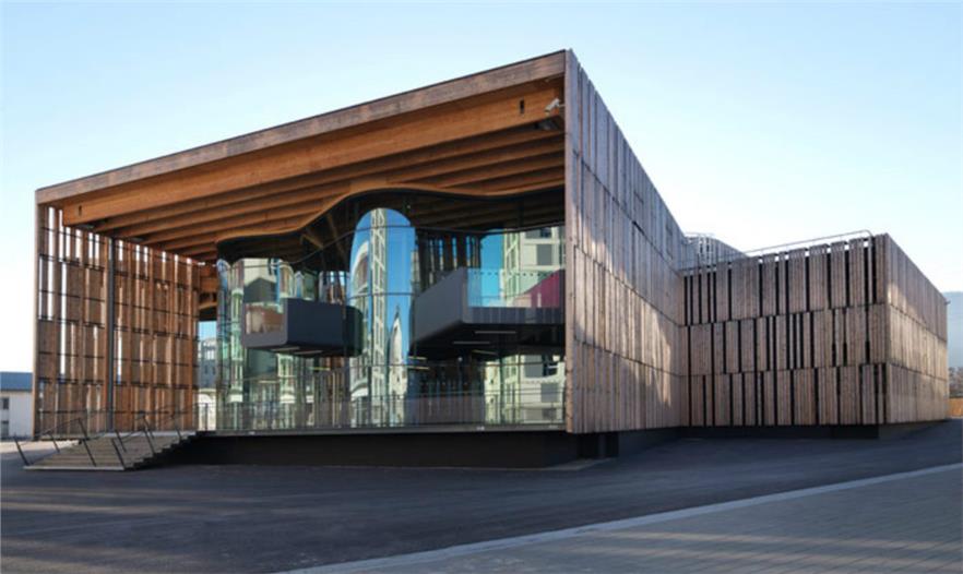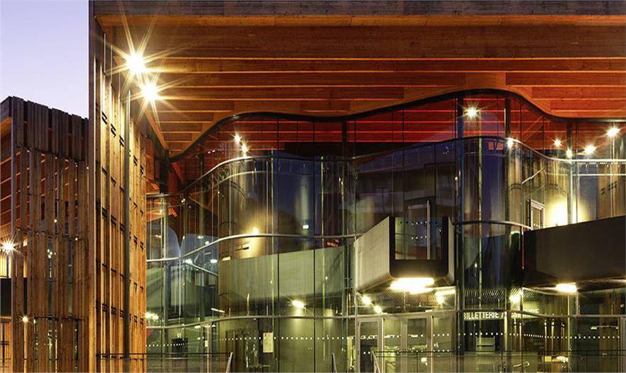 這個(gè)場(chǎng)地建在之前的一個(gè)19世紀(jì)的工業(yè)場(chǎng)地上,最近正在進(jìn)行全面的改革,位于格勒諾布爾Magasin當(dāng)代藝術(shù)中心附近。該音樂廳的外立面覆蓋著厚重的松木板,構(gòu)成通風(fēng)、陽光滿溢的入口。