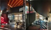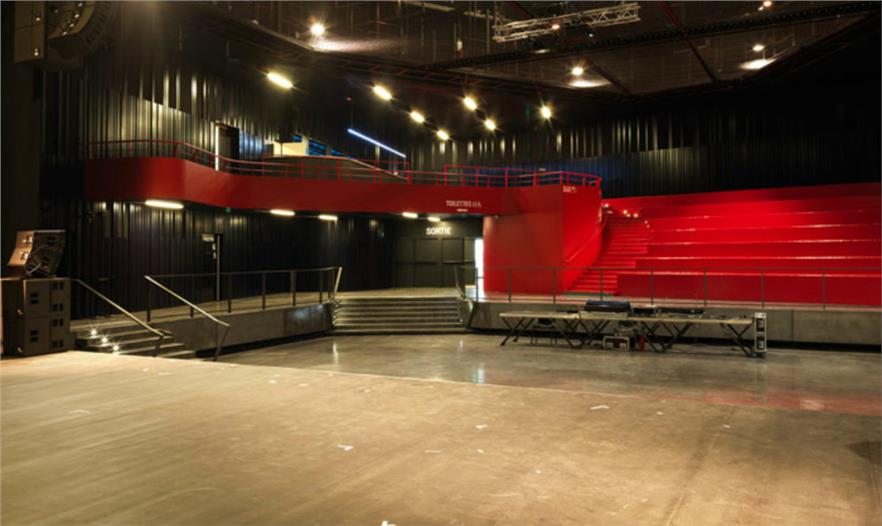 對(duì)于表演空間,建筑師選擇相對(duì)稱的設(shè)計(jì),讓藝術(shù)家具有足夠的靈活度。這個(gè)展廳包括2個(gè)高架的舞臺(tái),有幾個(gè)DJ的位置,分設(shè)在不同的高度。其策略布局讓觀眾成為表演的一部分,增強(qiáng)表演者與觀眾之間的緊密關(guān)系。