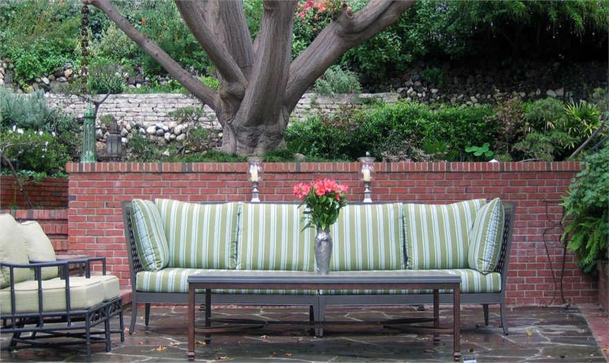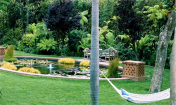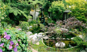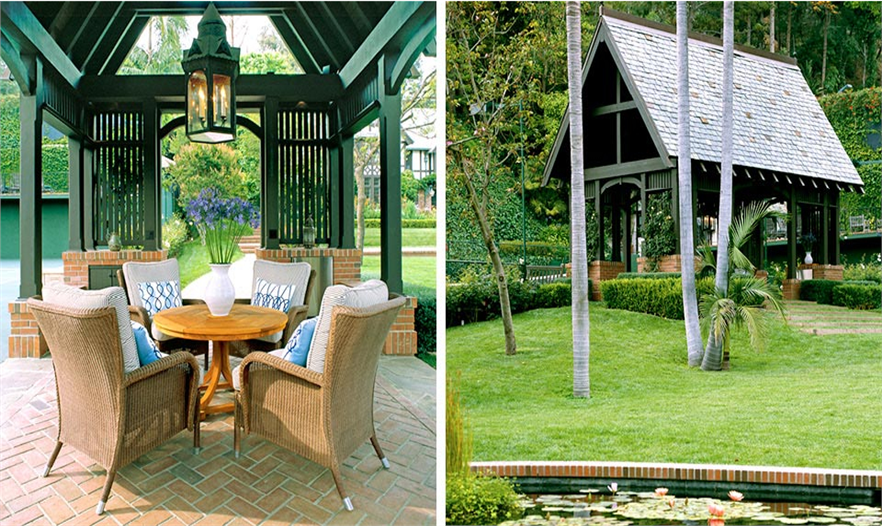 一條小型蜿蜒的道路由一棵巨大的羅漢松樹遮陰,在花園里建造出一個(gè)標(biāo)志物。在該道路的北端,玫瑰園與車道和汽車旅館接壤。新的涼亭是受主屋的啟發(fā)建造,位于一個(gè)小型繁茂的山地上。它有遮陰的座位區(qū),能觀賞到大型草坪和周邊花園的景色。住宅后面的戶外廚房和用餐室在英國風(fēng)格的地產(chǎn)上增添了加利福尼亞風(fēng)格。該區(qū)域的北面是一個(gè)漂亮的日本花園,種有楓樹、黑松和杜鵑,而日本水景營造寧靜的氛圍。