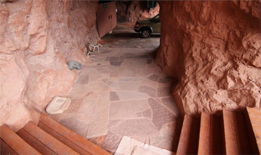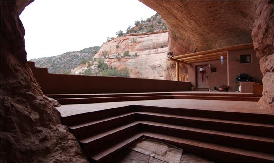這個(gè)獨(dú)特的住宅占地4.8公頃(12英畝),位于風(fēng)景優(yōu)美的蒙特蘇馬峽谷中,距離猶他州蒙蒂塞洛外20分鐘的路程,而且該住宅完全是自給自足的。Cliff Haven住宅的室內(nèi)生活空間達(dá)195平方米(2100平方英尺),長方形的結(jié)構(gòu),包括3個(gè)臥室、2個(gè)盥洗室和一個(gè)3車的車庫。由于該住宅建在一個(gè)現(xiàn)存的自然洞穴狀的開口處,從外面看它就像陷在懸崖邊上。住宅的后面挖掘了一條通道,供自然通風(fēng)以及雨水排放,也可作為消防通道。