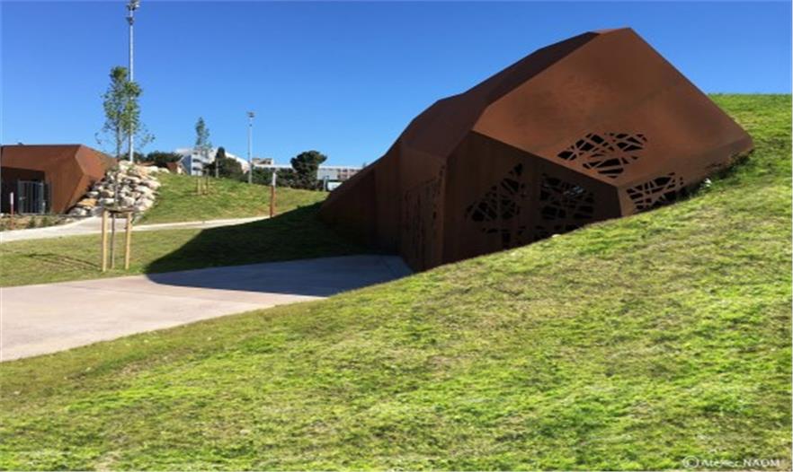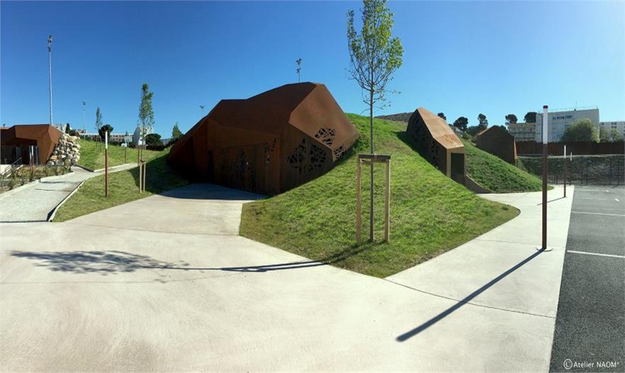 這個出乎所有人意料之外的設(shè)計方案不僅改變了人們的生活,同時也改變了整個街區(qū)的美學(xué)。這一系列連續(xù)的開放空間如同緊湊城市格局中的一個停頓,為學(xué)校師生與城市居民創(chuàng)造了可以盡情揮灑汗水、享受時光的寶貴場所,一個郁郁蔥蔥,充滿了生命力的獨特室外空間。從淺橘到深棕,泛著不同溫暖色澤的耐腐蝕鋼板體量呼應(yīng)著大地的顏色,穿插在點綴著盛開野花的草地中。