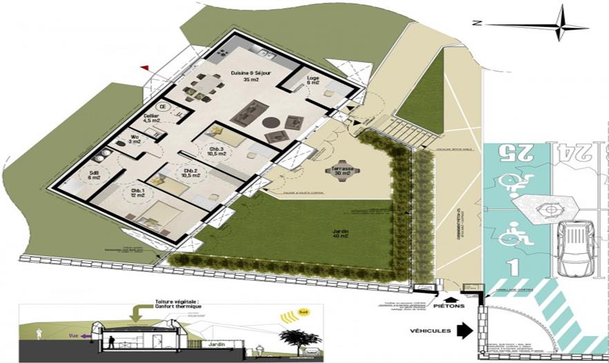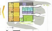 最終的方案簡單而與場地融為一體,外側(cè)的大量覆土空間保護著建筑的立面與屋頂,僅留出少數(shù)幾個通行入口,同時也為這片高樓林立的城市區(qū)域帶來了盎然的綠意。