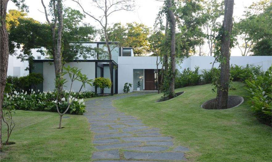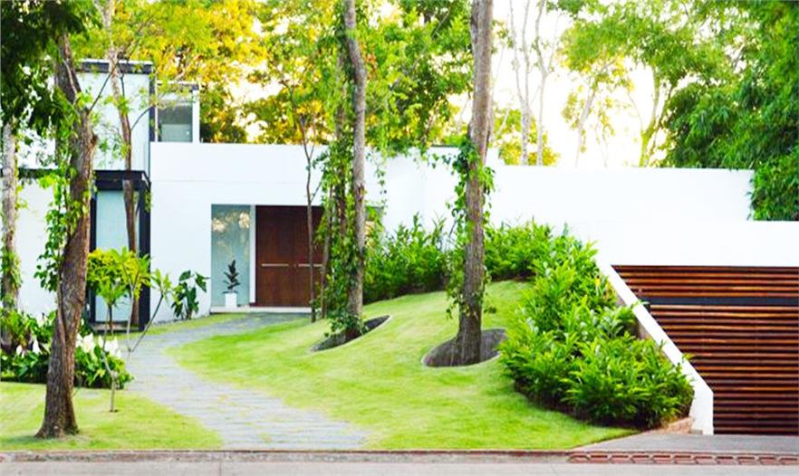 這個(gè)占地991平方米(1.0674萬平方英尺)的住宅位于圣克魯茲市獨(dú)家封閉式社區(qū)內(nèi),要遮擋該區(qū)域的熱帶陽光,并利用這塊傾斜的區(qū)域營造小尺度的氛圍。其側(cè)翼設(shè)計(jì)在現(xiàn)有樹木周圍,每個(gè)房間都能觀賞到周圍的綠景。