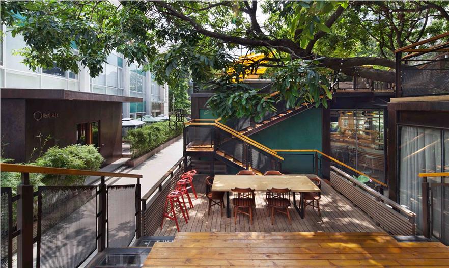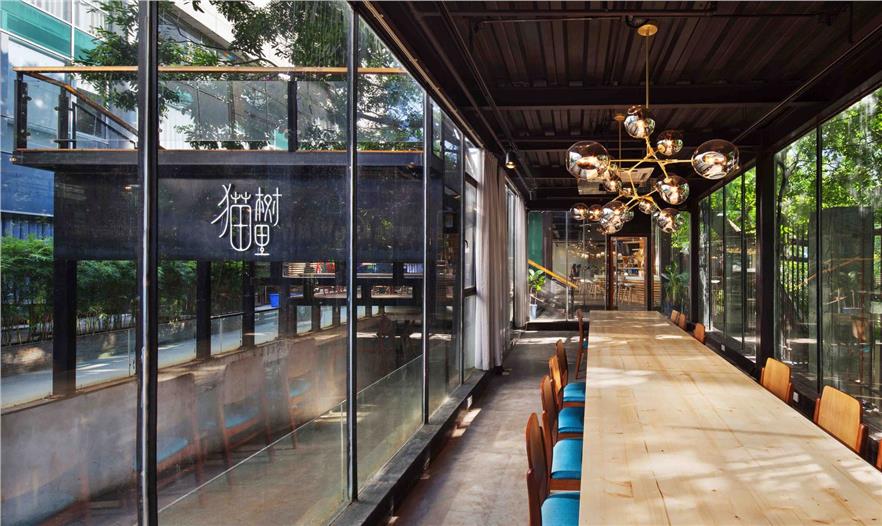 業(yè)主是深大的客座老師, 從事廣告行業(yè), 公司一直扎根在小西門的園區(qū), 后來搬到園區(qū)的一樓時, 我們?yōu)樗脑炝?00平米的辦公室, 同時間他也計劃在辦公室對面開一個咖啡廳。 咖啡廳的原址是一處燒烤店, 是晚上學生的熱點。業(yè)主希望這是一個創(chuàng)客文化的咖啡廳, 創(chuàng)業(yè)者可以來討論, 分享他們的項目, 也可以在這找到投資者. 深圳作為年輕的設計之都和創(chuàng)業(yè)者的樂園, 這種空間的需求很大。
