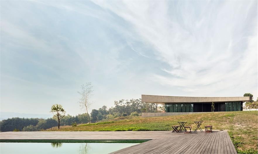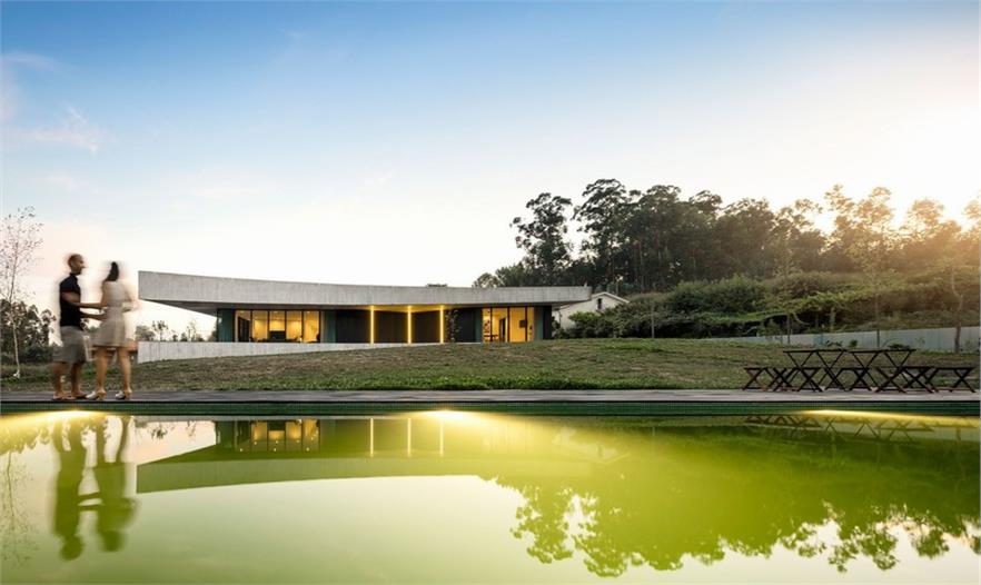 從房子建成的樣子來看,他們似乎實現(xiàn)了這一愿望。位于葡萄牙Paredes的這座住宅 Casa Cabo de Vila處在一個田園式的詩意鄉(xiāng)村,四周有著郁郁蔥蔥的植物,遠處是城市依稀的輪廓。