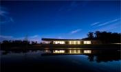 “支撐”起這片輕盈混凝土屋頂?shù)氖莾?nèi)部一道道曲折的混凝土墻,剩下的隔墻全部采用了精致的落地玻璃窗將視野全部打開,甚至在轉角處都做了弧形處理,弧形的玻璃讓視線沒有任何死角。