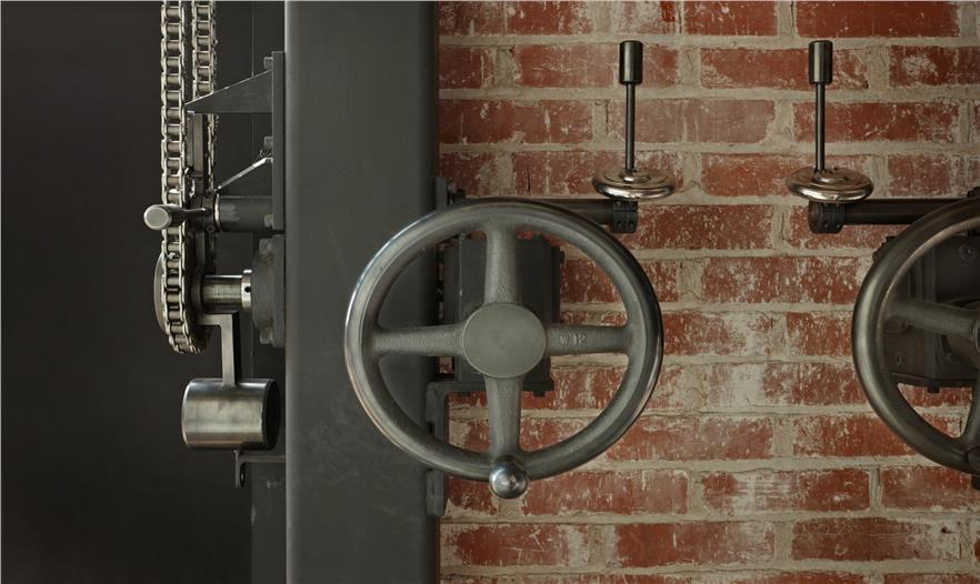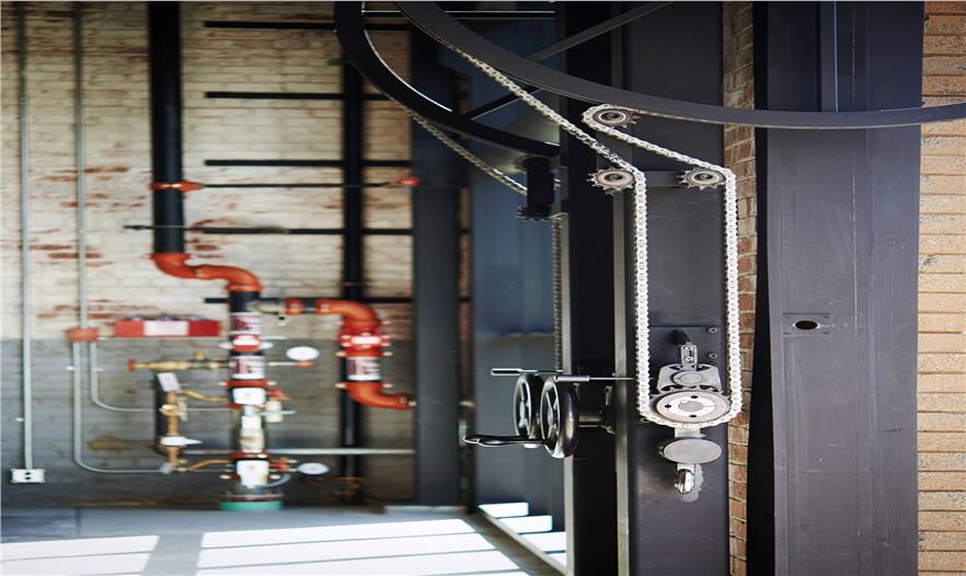 該建筑的外殼——帶有原始磚塊墻、木支架以及混凝土面——稍微有所改造,但依然是未加工狀態(tài)。該團(tuán)隊(duì)強(qiáng)調(diào)突出該建筑的汽車歷史,采用2個(gè)特制、手搖旋轉(zhuǎn)門代替?zhèn)}庫門,對(duì)街道開放,也成為戶外座位區(qū)的遮蓬。