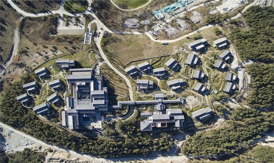 本項(xiàng)目規(guī)劃設(shè)計取意當(dāng)?shù)亍把┥降谝淮濉庇窈宓拇迓浣M群方式,將酒店設(shè)計成由多個組團(tuán)形成的聚落式空間,此時酒店仿佛成為雪山腳下一處炊煙裊裊、寧靜安詳?shù)摹按迓洹?。旅客身處酒店,抬頭仰望即可感受到高山勝景與冰川的震撼,此時雪山又仿佛成為了酒店的囊中景色。