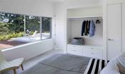 盥洗室附近就是臥室。其大型窗戶還能帶來優(yōu)美的景色和陽光,而且嵌入式開放櫥柜是房客掛衣服的空間。