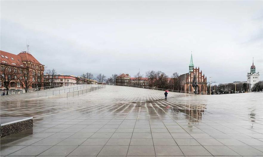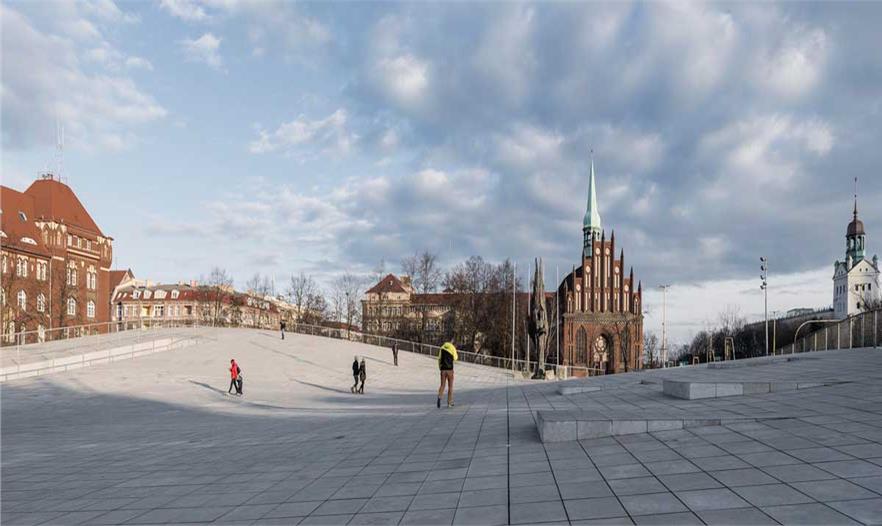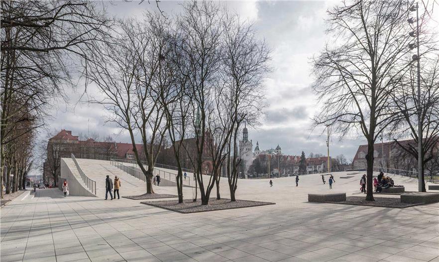 但是,室內(nèi)設(shè)計(jì)師邀請?jiān)撌聞?wù)所一起合作。最后KWK Promes事務(wù)所拒接了布景法,采用藝術(shù)替代。這樣,歷史博物館成為藝術(shù)博物館。除了這個(gè)限制,該事務(wù)所設(shè)計(jì)了一個(gè)平緩的地面,適合騎自行車和做運(yùn)動,所以,當(dāng)博物館關(guān)閉時(shí),還可以是一個(gè)廣場。廣場的地形適合滑板、滑冰或乘雪橇等運(yùn)動。這個(gè)廣場保護(hù)了其標(biāo)志性特征,依然是慶賀每年慶典的地方。市政府開始使用該廣場傾斜的地面用作露天音樂會和夏季影院。什切青居民了解到這是他們的廣場,現(xiàn)在他們聚集在這里慶賀,以此證明和體現(xiàn)他們的選擇。