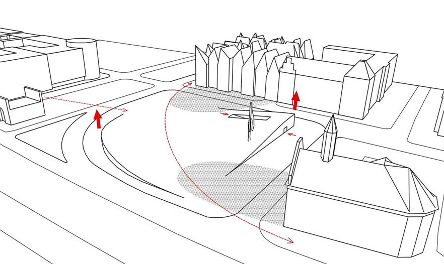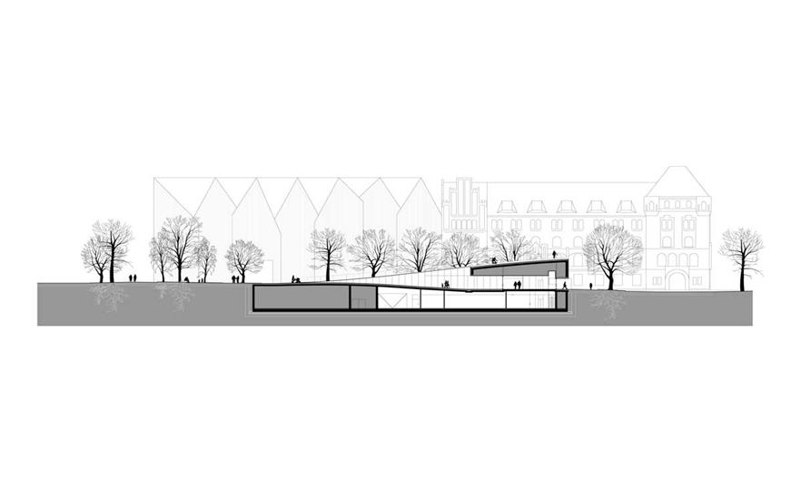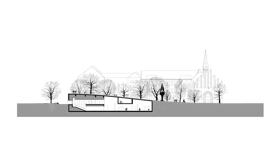 競賽區(qū)域不包括整個(gè)廣場,但該事務(wù)所決定打破界限為增添額外的價(jià)值——一個(gè)帶來全新的機(jī)會的空間。該博物館的輪廓來自競賽區(qū)域。第一層主要是入口區(qū),而地下是一個(gè)展覽區(qū)。